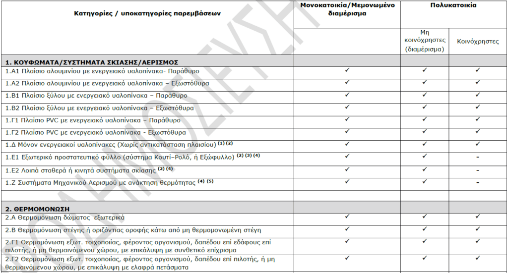 - For applications of individual apartments and single-family houses, upgrade by three (3) energy categories, in relation to the existing classification in the A’ PEA.